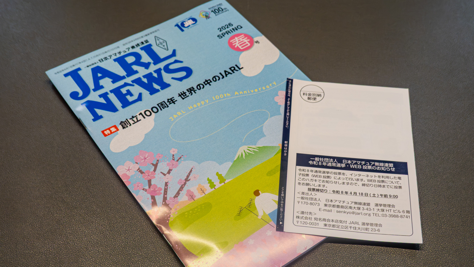 一般社団法人日本アマチュア無線連盟(JARL)の令和8年通常選挙に関する案内が、JARL NEWS 2026年春号とほぼ同じタイミングで届きました。