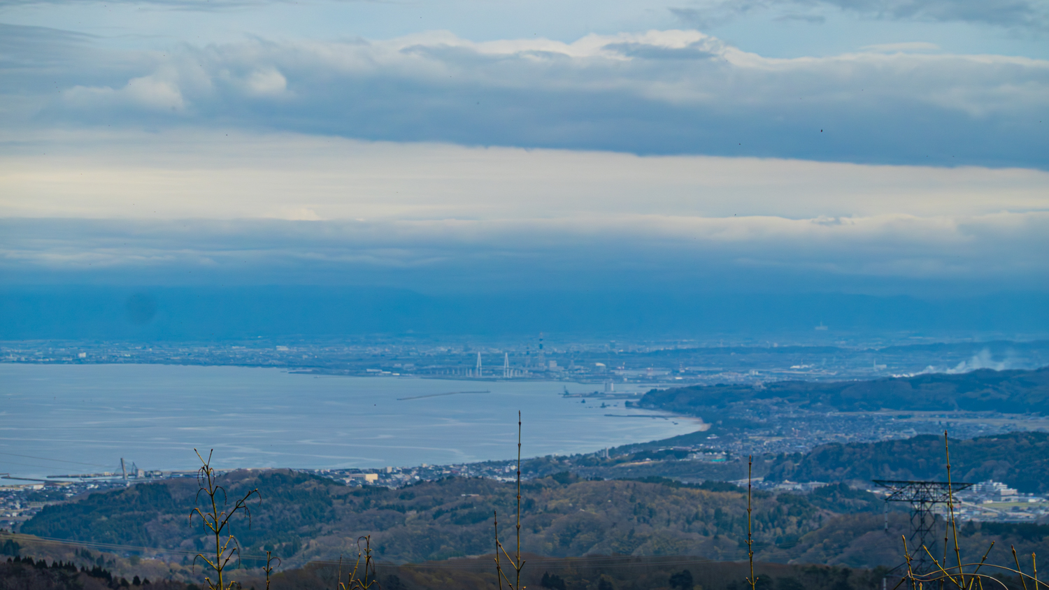 碁石ヶ峰にはいくつかの運用ポイントがありますが、今回は富山湾と立山連峰を望むことができる砂利の駐車場を選びました。あいにくの空模様ではありましたが、富山湾や新湊大橋、そしてうっすらと立山連峰の姿を確認することができました。